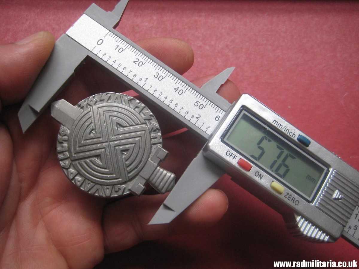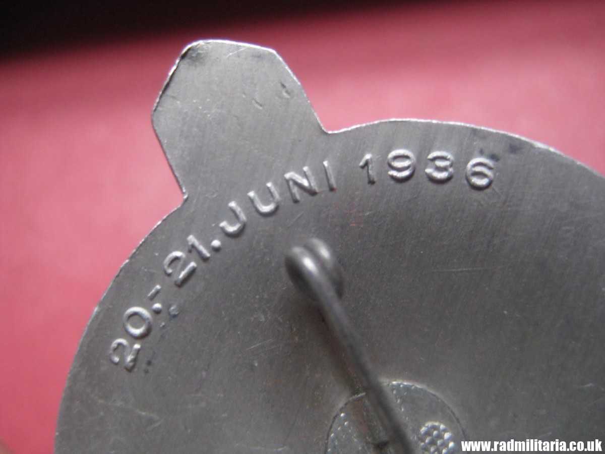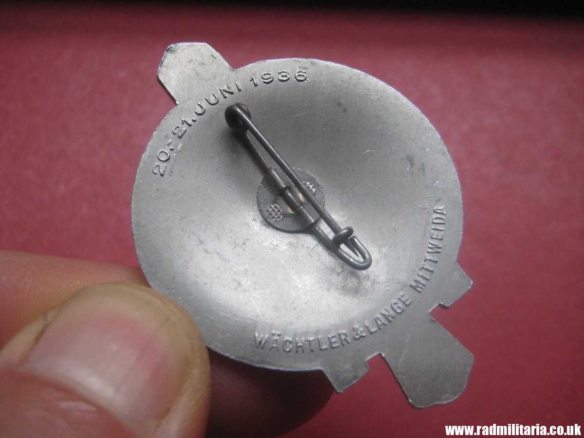 Today I am selling genuine German NSDAP TINNIE BADGE from WW2 era. It is commemorative badge from 1936 Gauappell Sachsen (Gau Rally Saxony) event held by the NSDAP in Germany. The badge features a stylized swastika surrounded by the text “GAUAPPELL SACHSEN 1936” in a runic-style script. It is complete with original pin to the back. Made of aluminum. SIZE: 57.8mm x 41mm. Total weight: 8.3g. The reverse side of the badge is marked with the manufacturer’s name: “Wachtler & Lange Mittweida”. Size – 50mm x 38mm.. The condition and all details in the pictures. 100% genuine item from WW2 era.