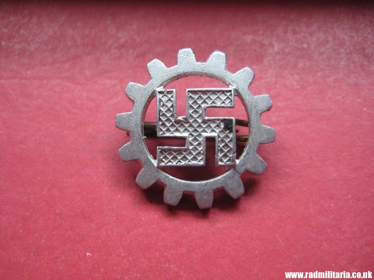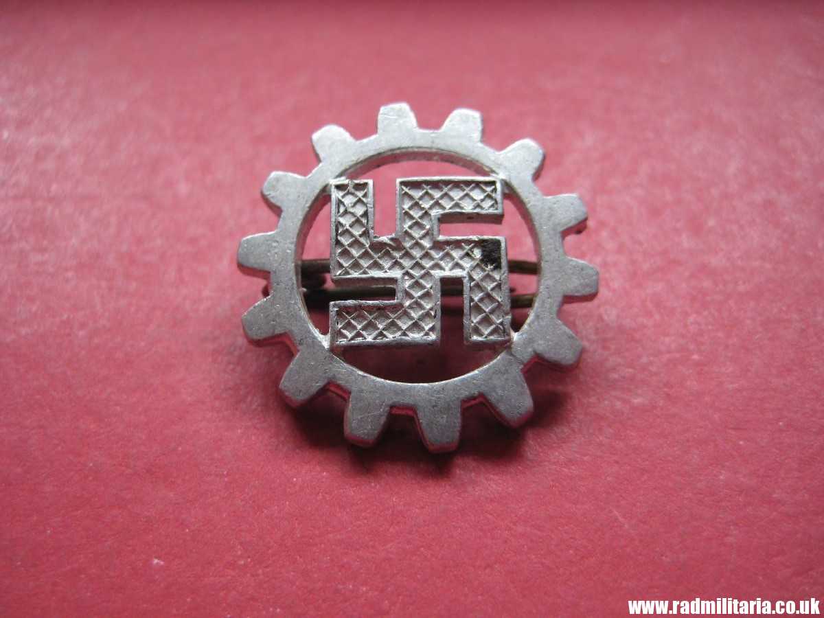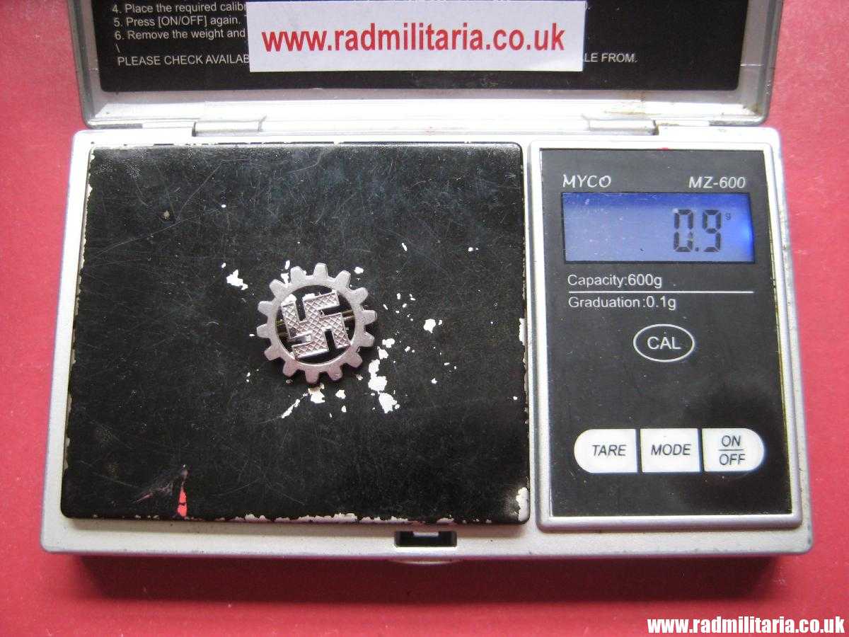 Today I am selling original German DAF (Deutsche Arbeitsfront DAF) BADGE from WW2 era. The badge is made of aluminum (front) and copper (back). Good condition complete with original pin on the reverse side. Maker marks: RZM M1/14. maker: M1/14 Matth. Oeschsler & Sohn, Ansbach. Size: diameter 19.3mm. Weight: 0.9g. The condition and all details you will find in the pictures. It original item from WW2. Badges like this were used by German Deutsche Arbeitsfront members.