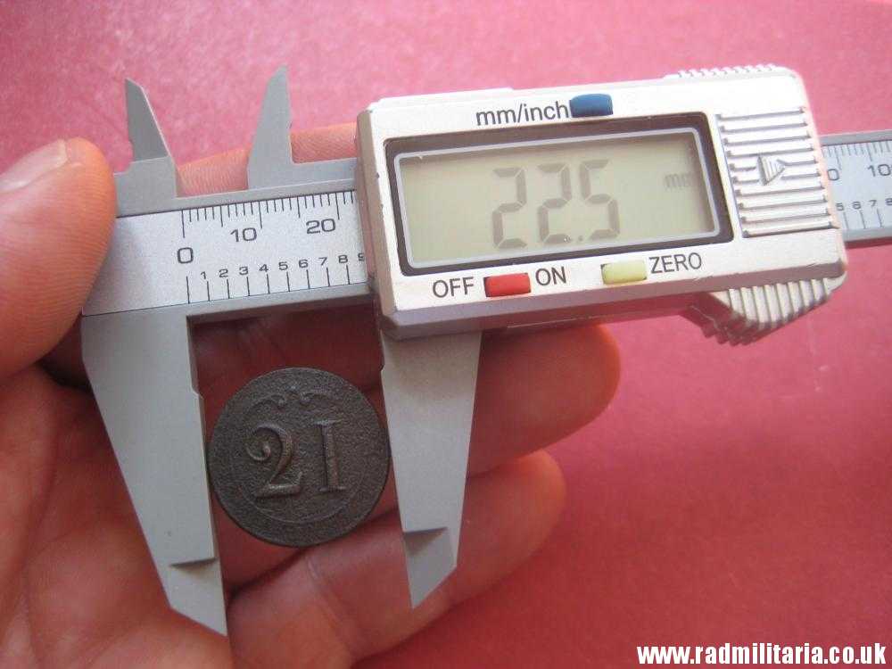 Today I am selling an original French BUTTON from Napoleonic War time. It is large size (diameter: 22.5mm) Napoleon 21st Infantry Regiment BUTTON with a number made of brass or bronze. There is no maker mark on the reverse side. This nice button is complete with original loop on the reverse side. The condition and all details you will find in the pictures. 100% genuine item produced before 1815 – metal detecting find. Battlefield relic.