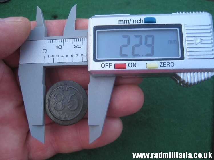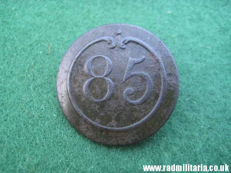 Today I am selling a original French BUTTON from Napoleonic War time. It is large size (diameter: 22.9mm) Napoleon 85th Infantry Regiment BUTTON with a number made of brass or bronze. There is no maker mark on the reverse side. This nice button is complete with original loop on the reverse side. The condition and all details you will find in the pictures. 100% genuine item produced before 1815 – metal detecting find. Battlefield relic.