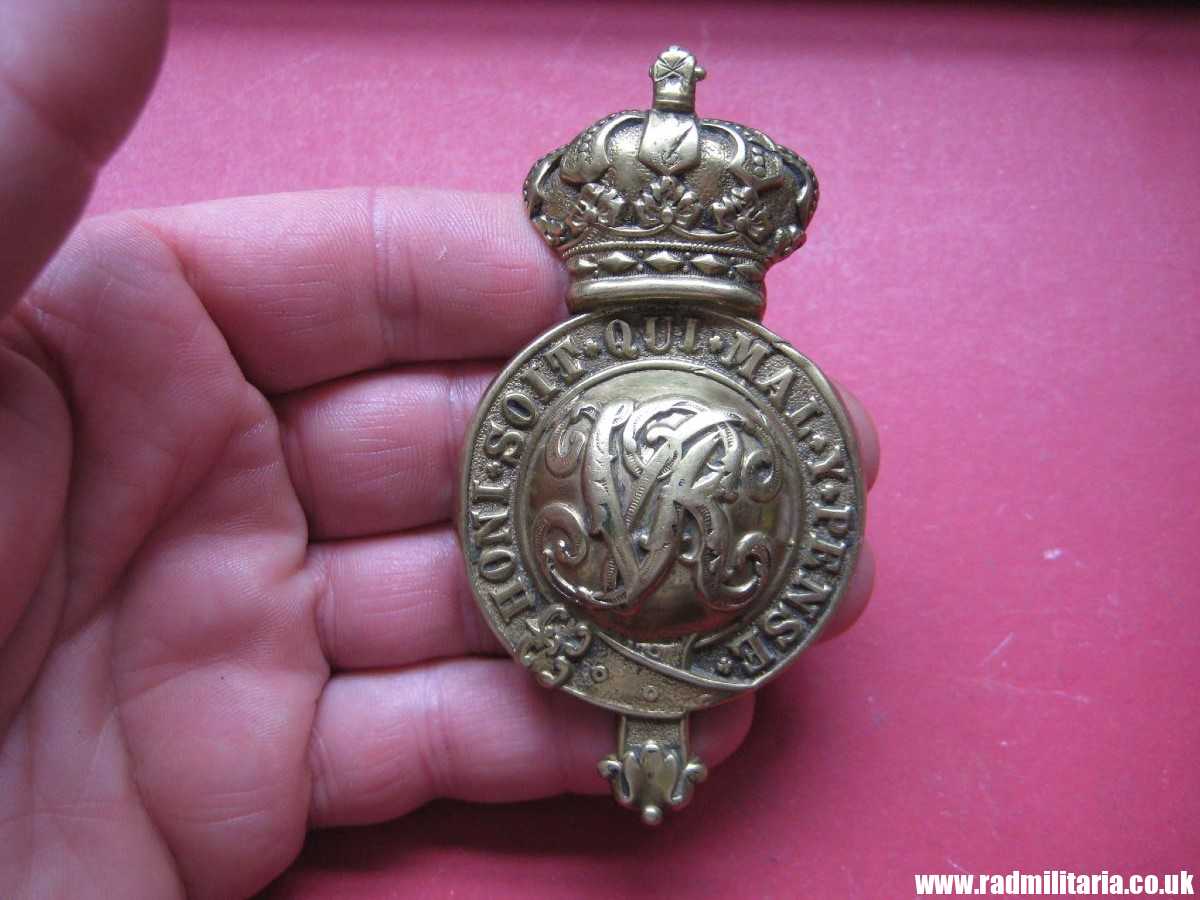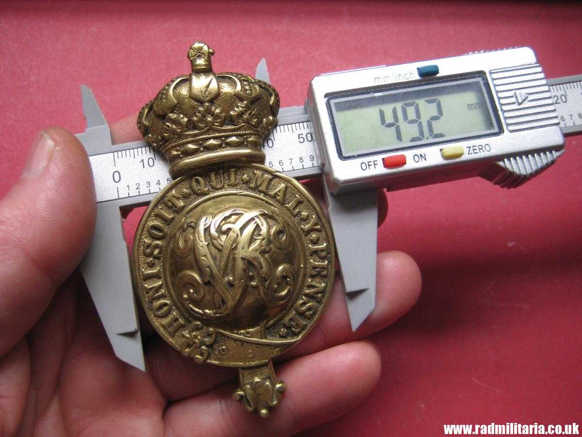 Today I am selling an original Victorian British METAL BADGE in used condition. It is made of brass. No maker marks. It is large size badge. Size: 49.3mm x 92.8mm (height), weight: 50g. The condition and all details you will find in the pictures. It is nice old item – Victorian British metal badge. Genuine.