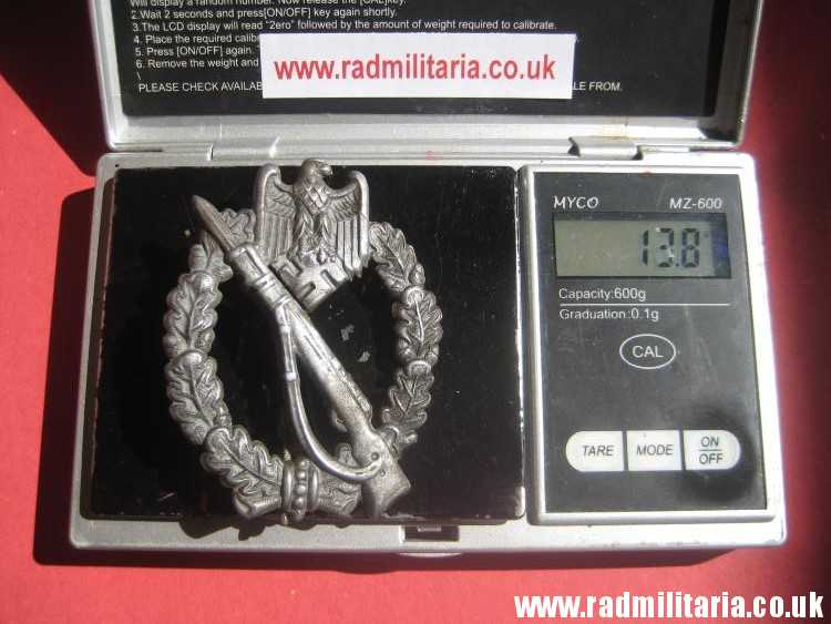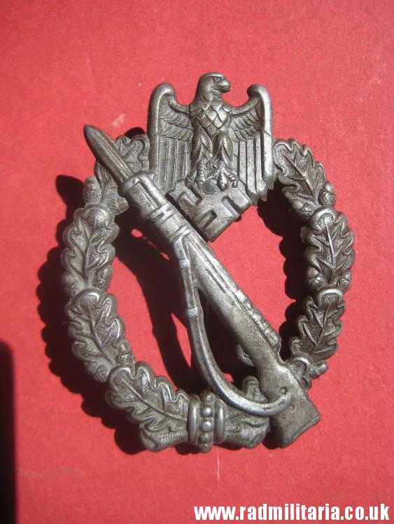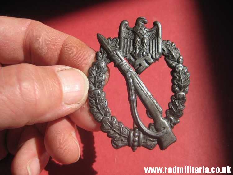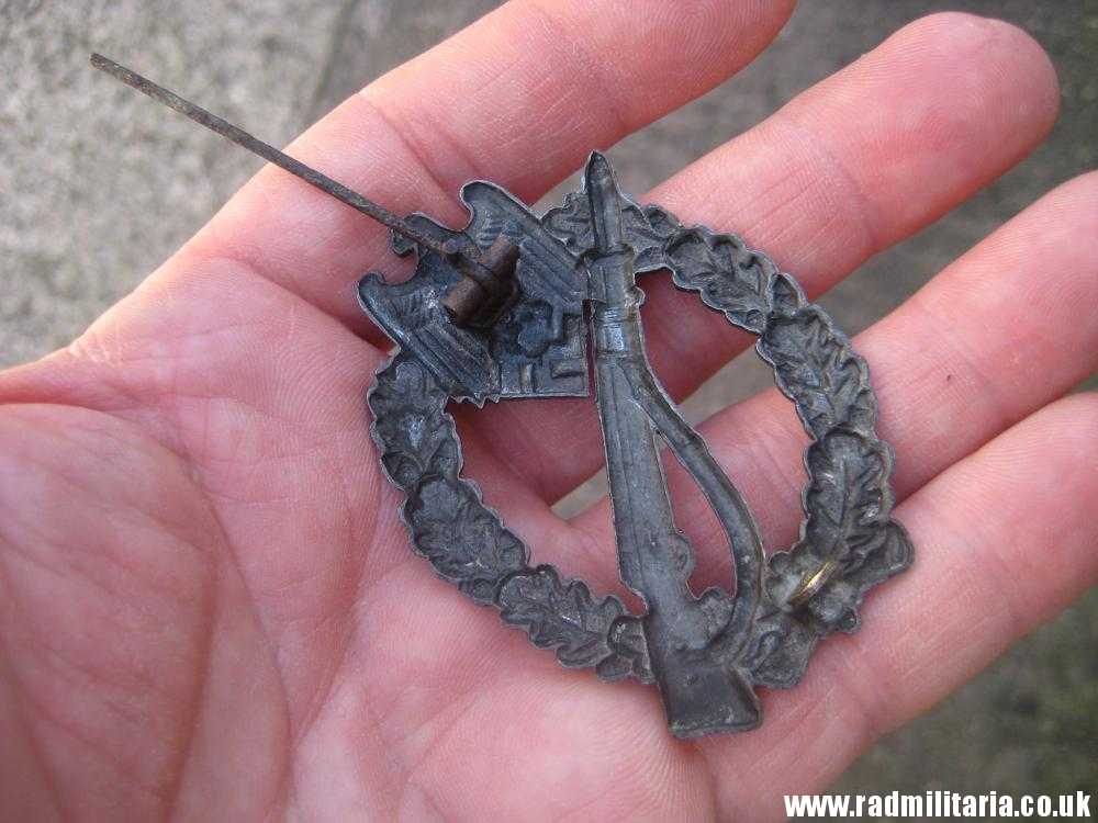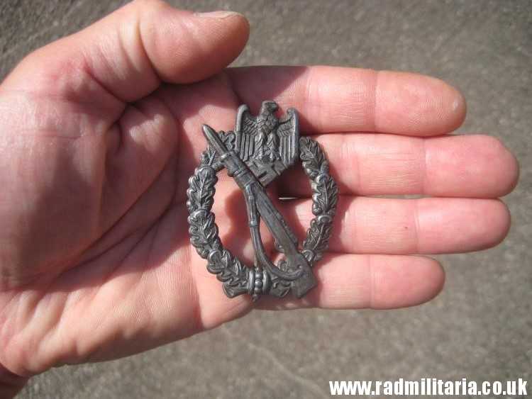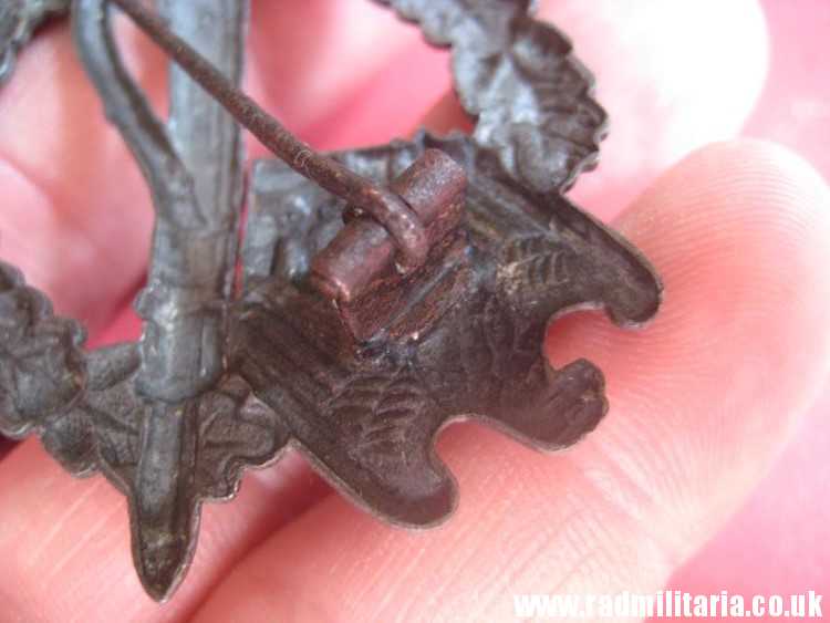 Today I am selling an original German Infantry Assault Badge (Infanterie Sturmabzeichen) from WW2 era. The badge is made of zinc – thin. I did not find any maker marks on it. Size: 63.2mm x 47.3mm. Weight: 14g. It is rare pattern of the badge made from thin zinc sheet. Good quality badge in good used condition. The pin on the reverse side is original but it was re-fixed to the badge by the glue. It was one hole on the badge (top of the swastika) repaired by the glue – please look in the photos. The condition and all details you will find in the pictures. It is original item from WW2 in good used condition. GENUINE !!
