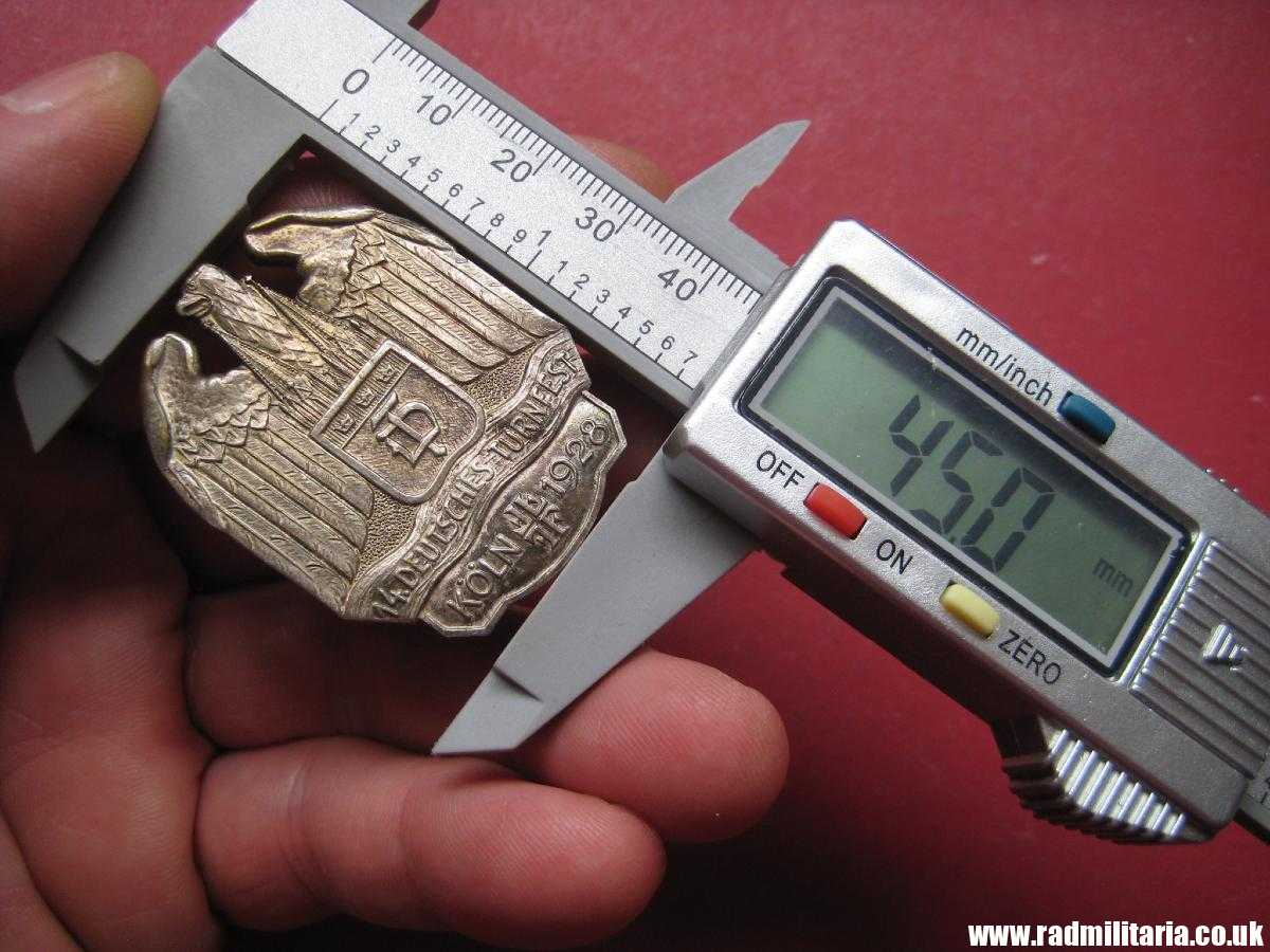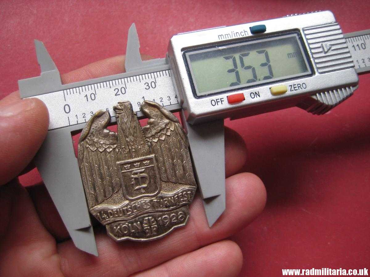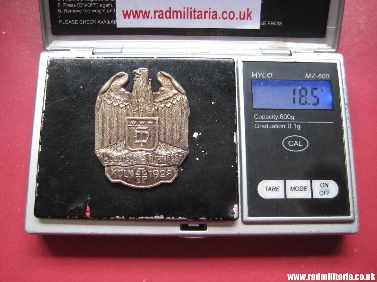 Today I am selling an original German pre-WW2 TURNFEST “Tinnie Badge”. It is in very good used condition made of white metal. 100% genuine good quality badge – 14. DEUTSCHES TURNFEST KOLN 1928. No makers marks on the reverse side. Size: 35.3mm x 45mm (heigh). Weight: 18.5g. It is complete with original pin on the reverse side. Would look great in any Collection. 100% original German badge from 1928.