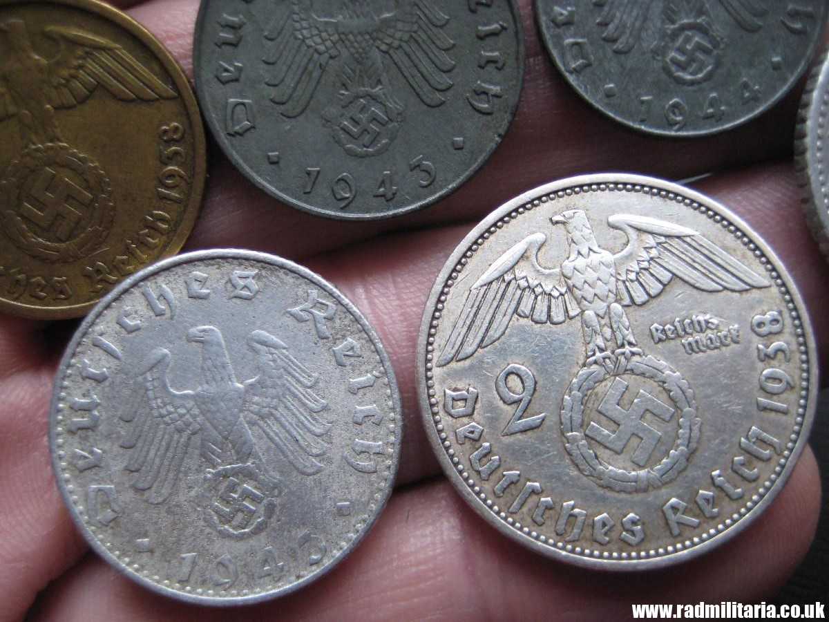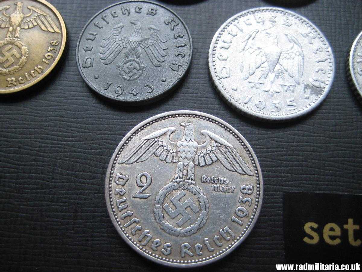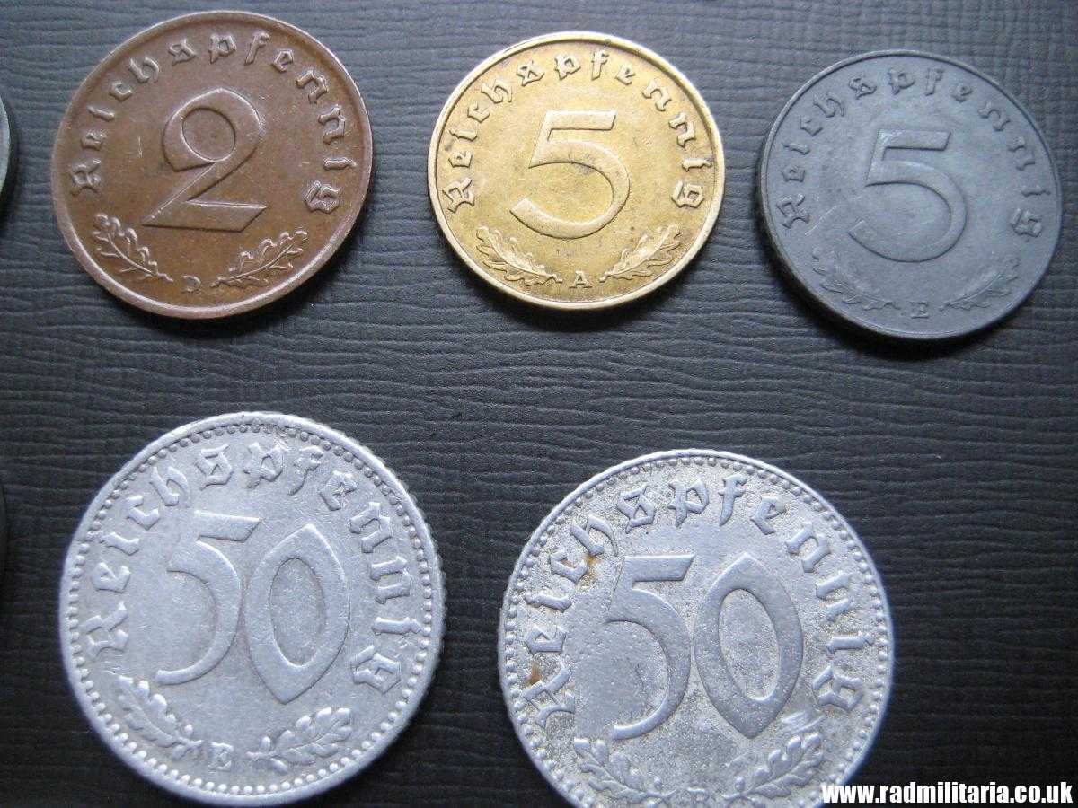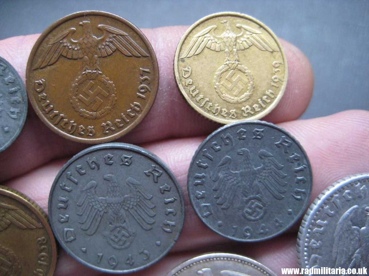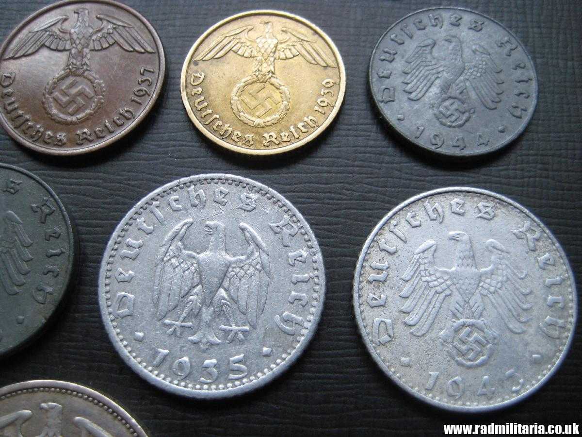 *1 Pfenning 1937, *1Pfenning 1941, *2 Pfenning 1937, *5 Pfenning 1939, *5 Pfenning 1944 *10 Pfenning 1938, *10 Pfenning 1943, * 50 Pfennig 1935, *50 Pfenning 1943, *2 Mark 1938. Set no.22.