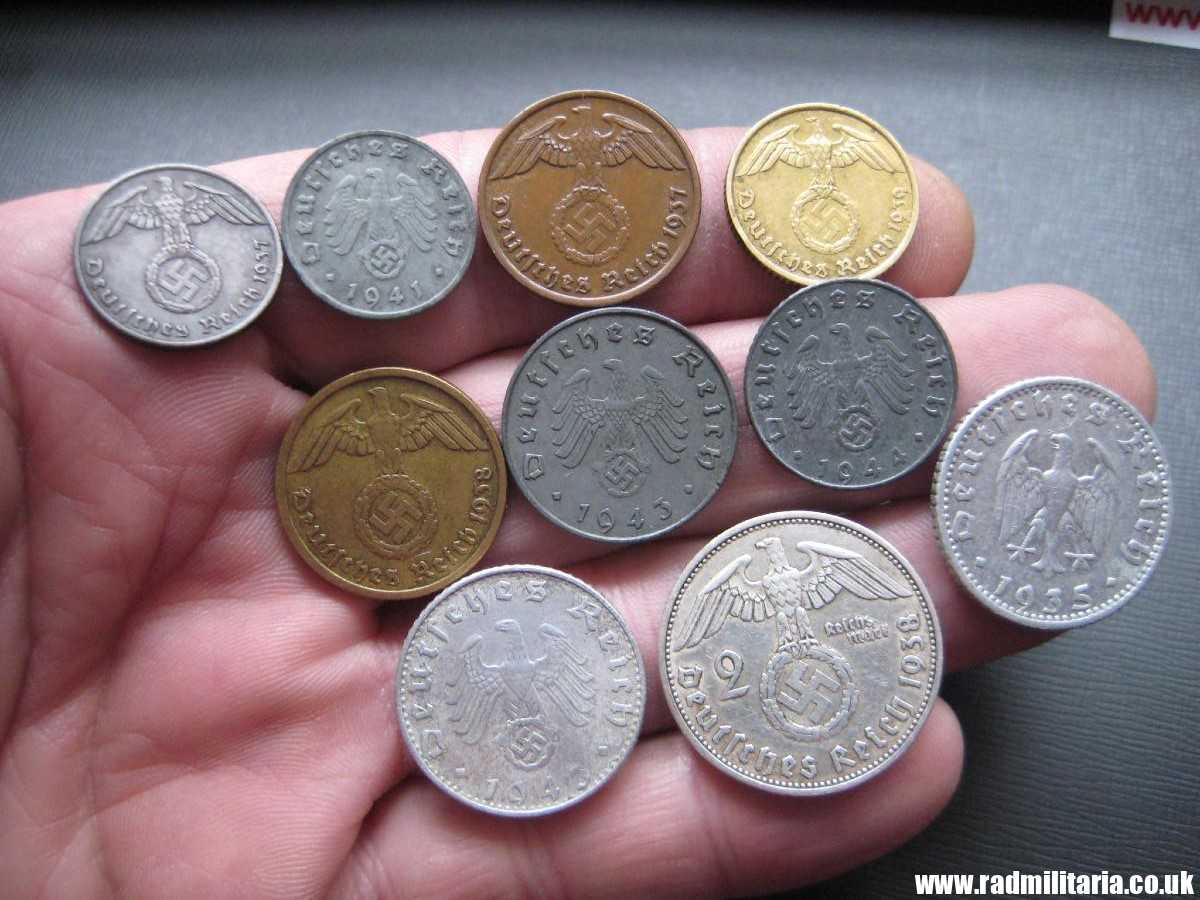 Today I am selling a SET OF 10 original WW2 Nazi German COINS with EAGLE – SET. All coins are 100% original in used condition. The condition and all details you will find in the pictures.