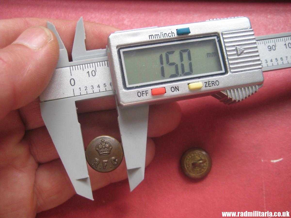 Today I am selling SET of 2 original British military BUTTONS from WW1 era. Both are very small size metall buttons in good used condition. There is identical maker mark: “J.R. GAUNT & SON LONDON ENG” on the reverse side of both buttons. SIZE: diameter – 14.9mm. Both buttons are made of brass. I think there are buttons from the cap. The condition of the buttons and all details you will find in the pictures. GENUINE ITEMS from WW1 era. RFC buttons – set of 2.