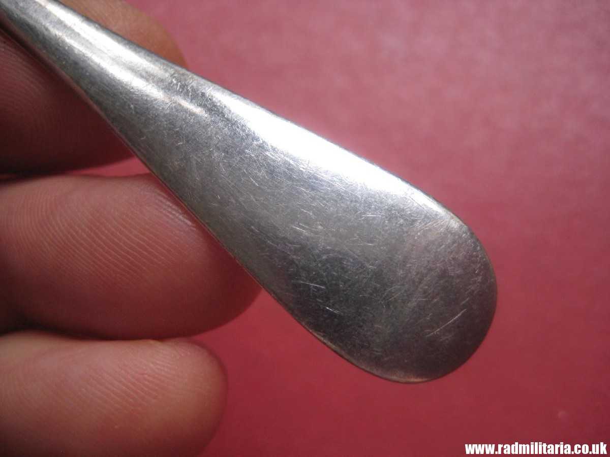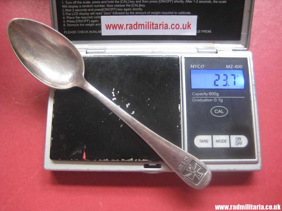 I am selling an 100% original WW1 German TEA SPOON with IRON CROSS and date 1914 – 1915 engraved on it. This spoon is silver plated. Good used condition. Size: lenght 14.5cm. Weight – 24g. The condition and all details you will find in the pictures. INSCRIPTION: front side – Iron Cross and date 1914-15, reverse side: Hallmark:”B” (Bruckmann), a locomotive engine and “90” indicating heavy silver plate. This spoon was produced by a famous German maker – BRUCKMANN. It is original German TEA SPOON from WW1 era – probably produced in 1915. It is 100% original item. RARE !!