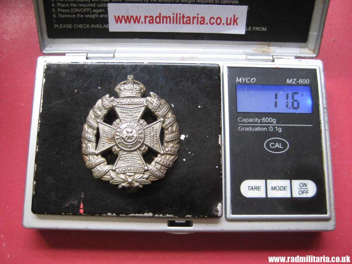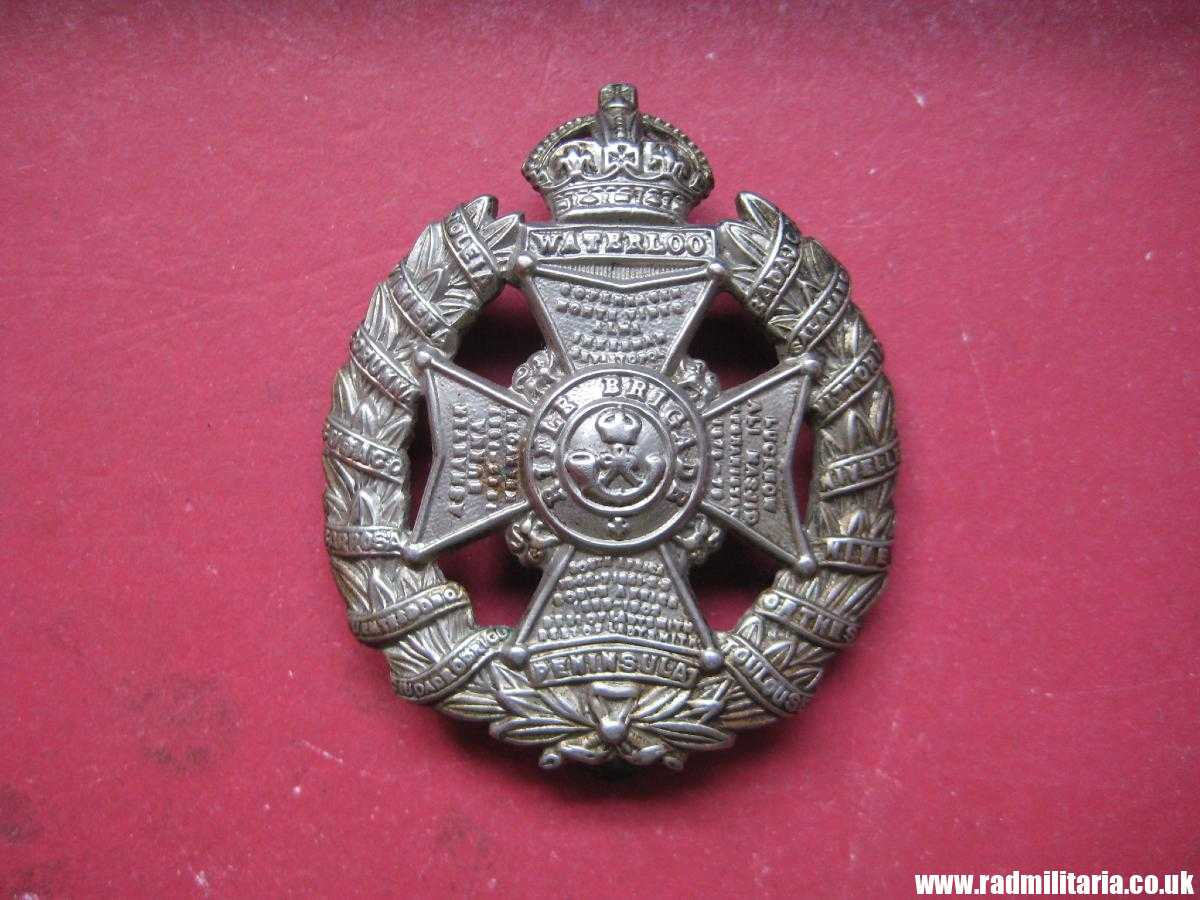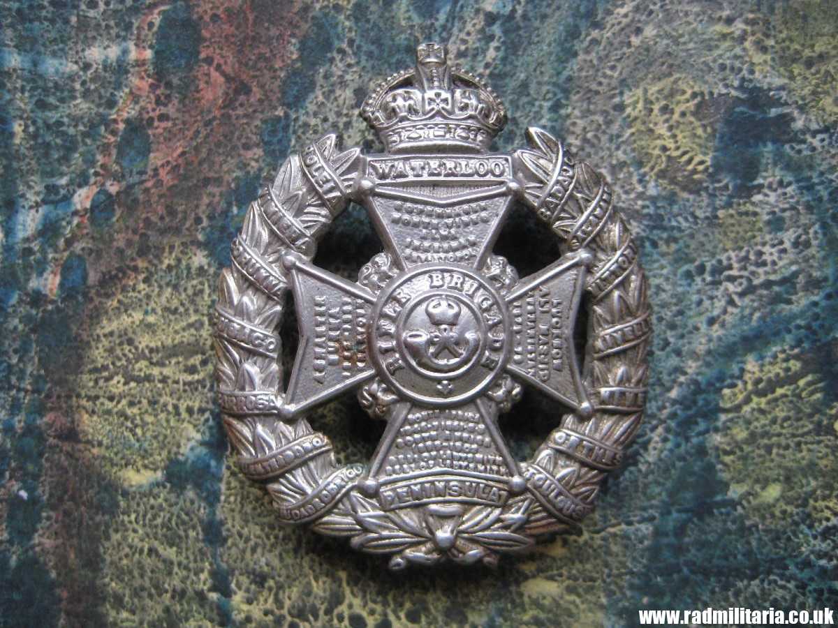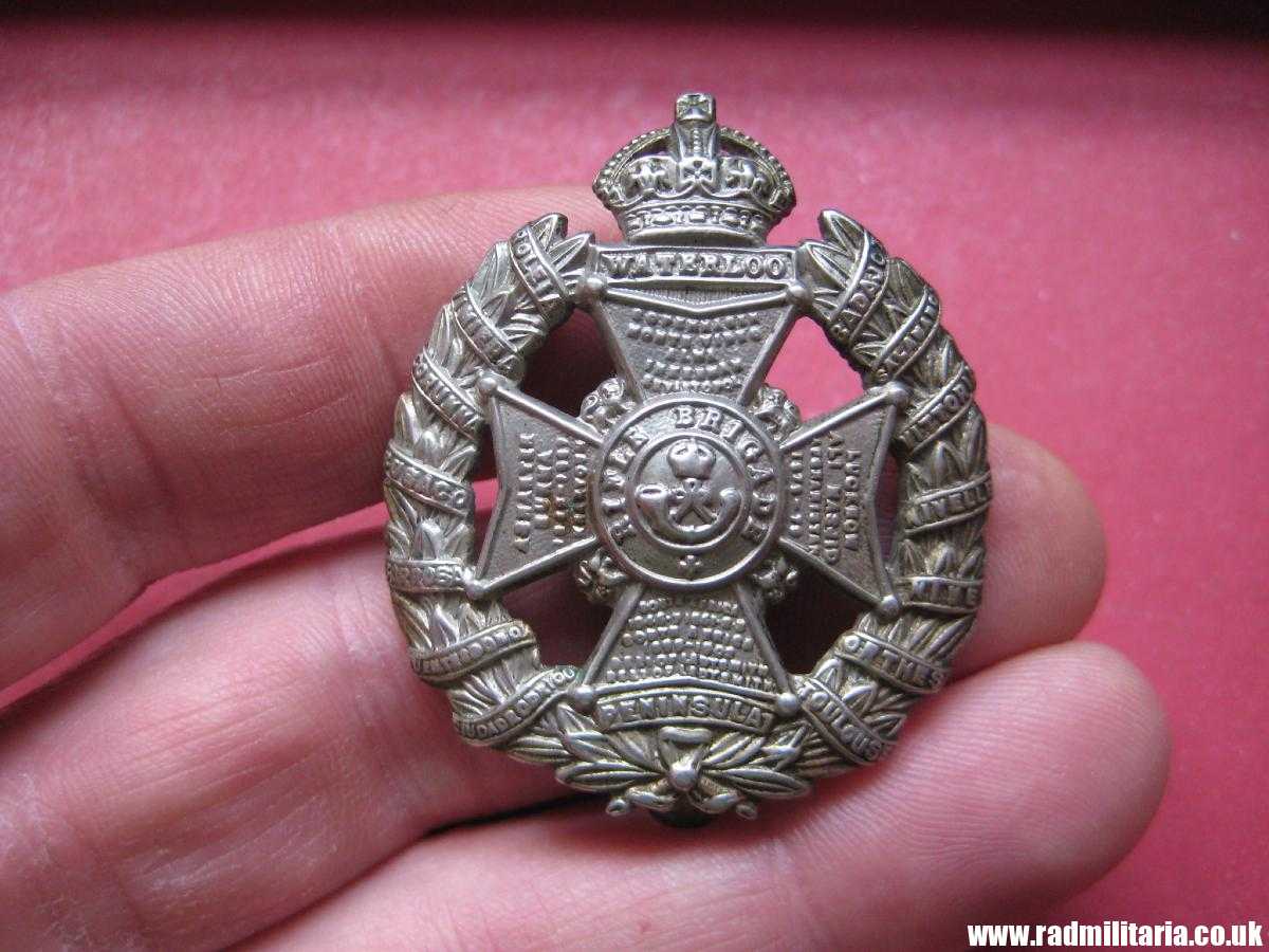 Today I am selling an original WW1 British cap badge in good used condition, made of white metal. No maker marks. It is original RIFLE BRIGADE cap badge old pattern as worn during the Great War period in good used condition. Size: 39mm x 46mm (height), weight: 11.5g. The condition and all details you will find in the pictures. It is nice old item – British metal cap badge. Genuine.
