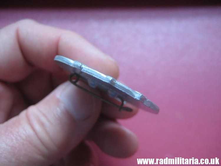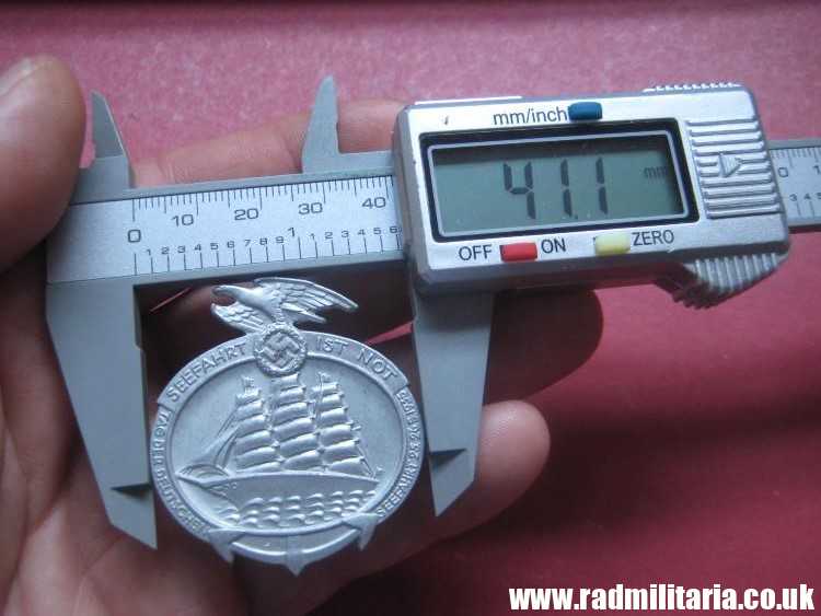 Today I am selling a Nazi German pre-WW2 1935 Sea Marine Day “Tinnie Badge”. It is in good used condition made of aluminum. 100% genuine badge with maker marks to the back: “PRAGEANSTALT HAHL PFORZHEIM”. Size: 41.5mm x 45.7mm. Weight: 7g. It is complete with original pin on the reverse side. Would look great in any Militaria Collection. 100% original German badge from WW2 era.