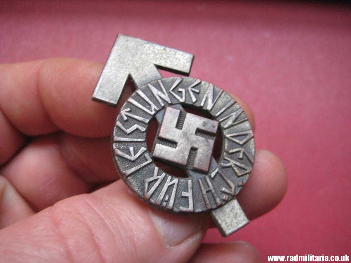 Today I am selling an original Nazi German HJ Hitler-Jugend BADGE – FUR LEISTUNGEN IN DER H.J. This badge is in good used condition. It is made of metal with maker mark on the reverse side: “RZM M1/35” maker – M1/35 Wachtler & Lange, Mittweida. Size: 51.5mm x 30.9mm. Weight: 8.3g. The pin on the reverse side is original. It is genuine HJ (HitlerJugend) metal badge from WW2 era. The condition and all details you will find in the pictures. It is genuine old German badge in good used condition.