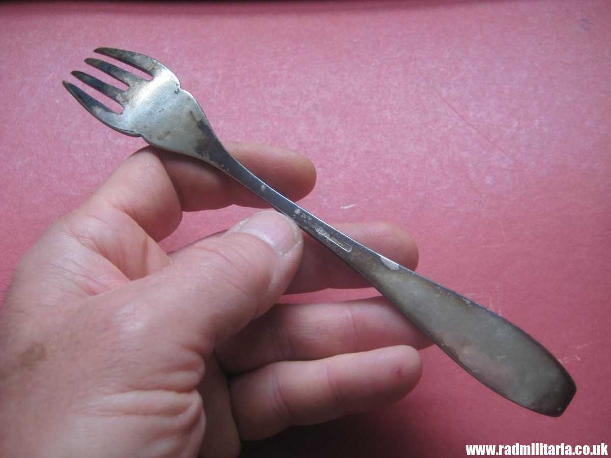 I am selling 100% original WW2 German LUFTWAFFE FORK made of white metal and silver plated. It is in good used condition but needs good cleaning. Size: lenght 18.5cm. Weight – 45.2g. The condition and all details you will find in the pictures. DESCRIPTION: Luftwaffe eagle “UETERSEN” and maker mark:”GEBR. HEPP 90″. It is original German LUFTWAFFE FORK from WW2 era. 100% original !