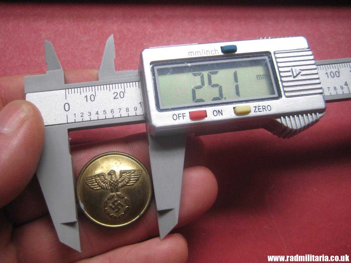 Today I am selling a genuine WW2 German BUTTON made of zinc in good used condition. Large size – diameter 25mm, weight:3.6g. I did not find any maker marks on the reverse side. It is made of bronze plated zinc (non magnetic). The condition and all details you will find in photographs. It is genuine German large size button with eagle from WW2 era. 100% genuine.