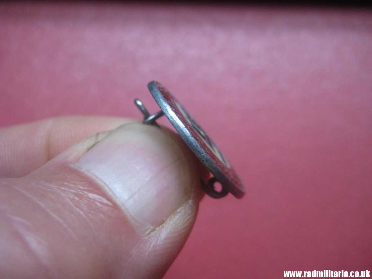 Today I am selling an original German NSDAP membership badge. It is marked on the reverse side ‘RZM M1/105″. It was produced by – M1/105 Hermann Aurich, Dresden. It is complete in good used condition with original pin on the reverse side. I think the badge is made of zinc. DESCRIPTION: “-NATIONAL-SOZIALISTISCHE- D.A.P.”. There is nice paint: red, white and black on the front side of this badge. It is genuine NSDAP membership badge from WW2 era – 100% genuine. The condition and all details you will find in the pictures.