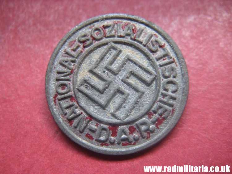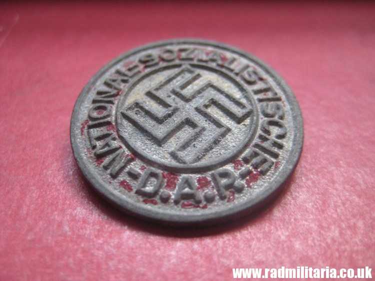 Today I am selling an original German NSDAP membership badge. It is marked on the reverse side ‘RZM M1/17’. It was produced by – M1/17 F. W. Assmann & Söhne, Lüdenscheid. It is complete in good used condition (large part of paint is lost) with original pin on the reverse side. The badge is made of zinc. DESCRIPTION: “-NATIONAL-SOZIALISTISCHE- D.A.P.”. It is genuine NSDAP membership badge from WW2 era – rare. 100% genuine. The condition and all details you will find in the pictures.
