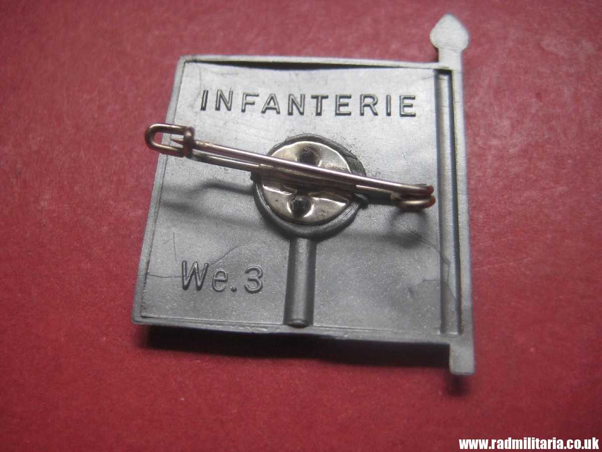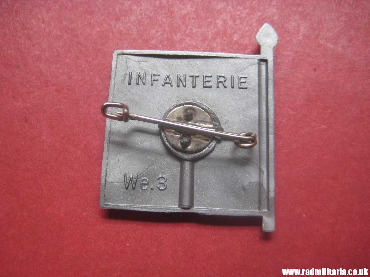 Today I am selling a 100% original Nazi German WHW PLASTIC tinnie BADGE. There is a INFANTERIR FLAG on the front side. Size: 27.9mm x 35.2mm (height). It is complete with original metal pin. There is description on the reverse side of this badge: “INFANTERIE We.3”. Made of plastic. Very good condition. Original item from WW2 era. The condition and all details you will find in the pictures.