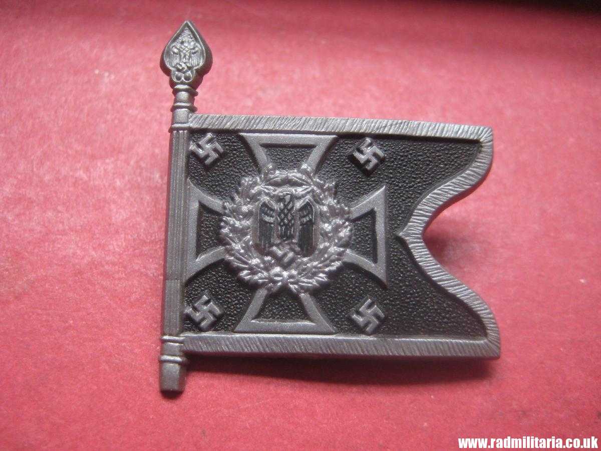 Today I am selling a 100% original Nazi German PLASTIC BADGE in VERY GOOD condition. There is a BANNER on the front side. Size: 33.7mm x 36.5mm (height). There is original pin on the reverse side. There is description on the reverse side of this badge: “PIONIERE MOT Su13.”. It is made of plastic. Very good condition. It is original item from WW2 era. The condition and all details you will find in the photos.
