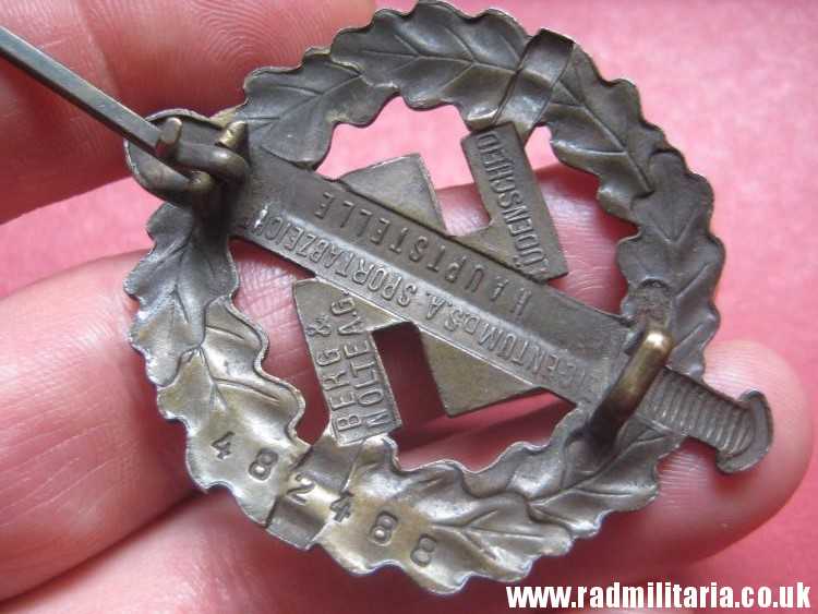 & WW2 German SA SPORT BADGE maker: BERG & NOLTE A.G. made of steel no. 482488 – genuine !!