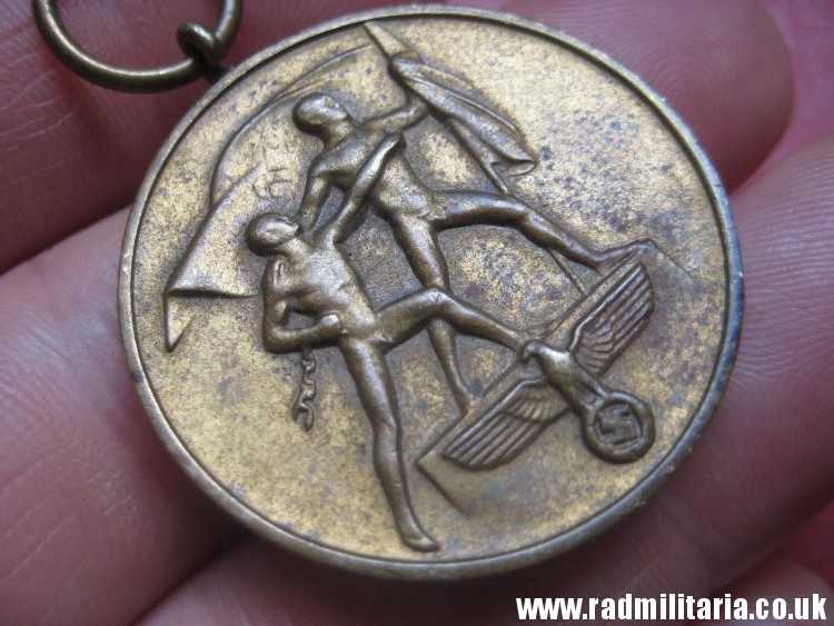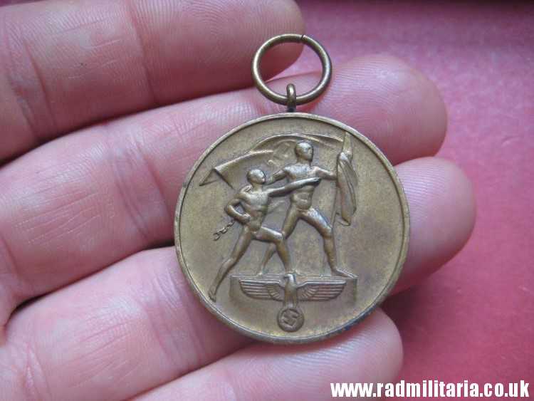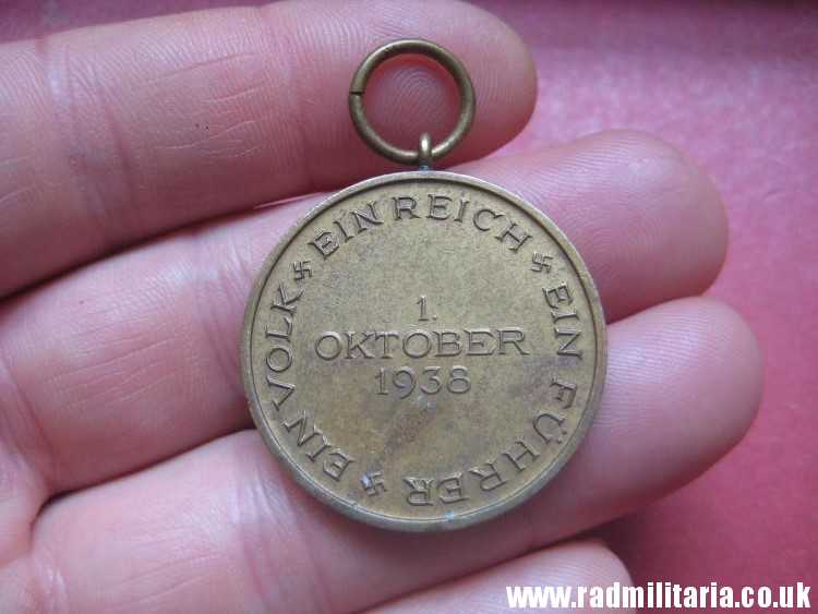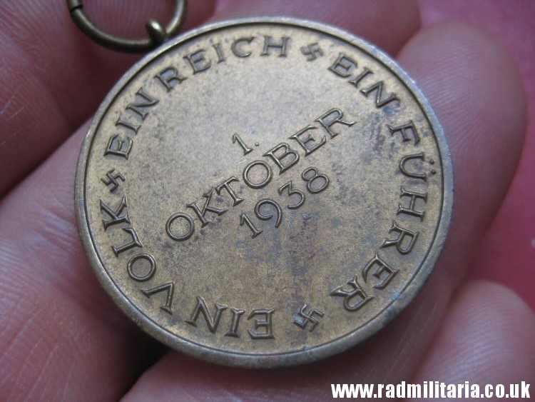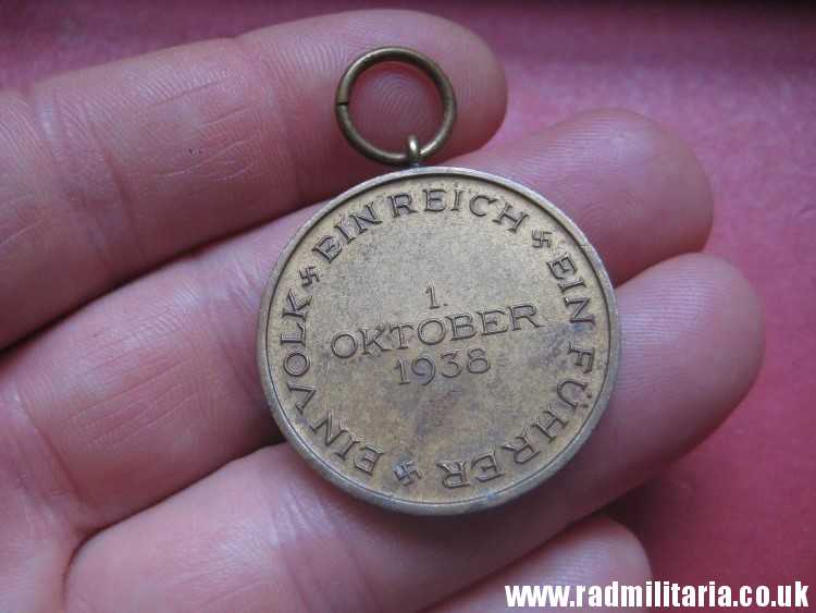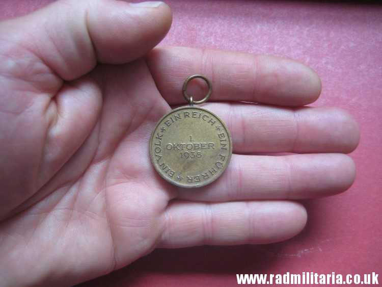 Today I am selling an original WW2 German SUDETENLAND ANSCHLUSS MEDAL. Probably it is made of bronze or brass. Inscription: “1. OKTOBER 1938 EIN VOLK EIN REICH EIN FUHRER “. It is original old item in good used condition. NO ribbon. Size: diameter – 32.3mm. Weight – 13.2g. The medal has no ribbon. Genuine old Nazi German MEDAL from 1938. It is a decoration of Nazi Germany awarded during the interwar periob. SUDETENLAND MEDAL is is a second medal in the series of Occupation Medals. The medal was awarded to participants in the occupations of Sudetenland in October 1938 and Czechoslovakia. The condition and all details you will find in the pictures.