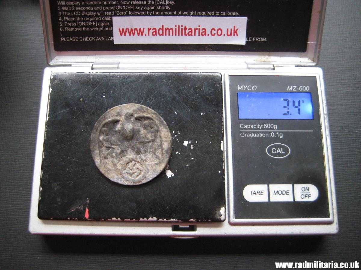 Today I am selling a nazi German DAY BADGE made of aluminum. It was issued in 1939. This badge is in poor condition. It is complete with original pin on the reverse side. SIZE – diameter: 32.8mm, weight: 3.3g. 100% genuine. The condition and all details you will find in the pictures. It is original old BADGE with German Eagle from 1939.
