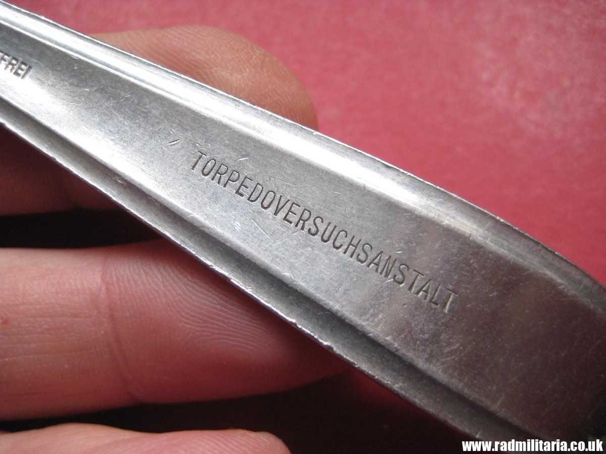 The marking TORPEDOVERSUCHSANSTALT refers to a German military institution. These were research facilities of the KRIEGSMARINE , responsible for developing and testing torpedoes and naval weaponry. The most well-known locations were in ECKERNFORDE and GDYNIA (then called GOTENHAFEN)