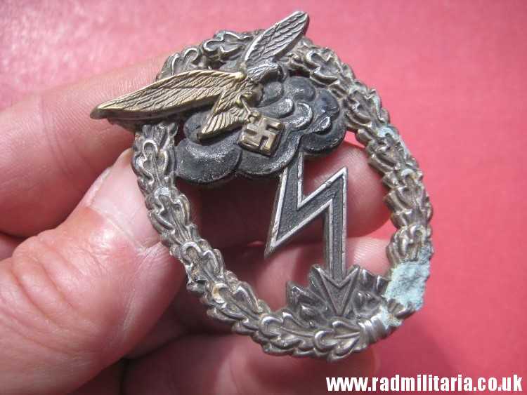 Today I am selling an original WW2 LUFTWAFFE BADGE in poor condition – metal detecting find. It is GROUND ASSAULT BADGE (ERDKAMPFABZEICHEN). This badge is made of zinc without maker mark. Weight: 31g. Size: 56mm x 42mm. It is in poor condition damaged and without pin on the reverse side. There is NO maker mark on the reverse side of this badge. The condition and all details you will find in the pictures. Genuine German Luftwaffe badge from WW2 era. GENUINE !!