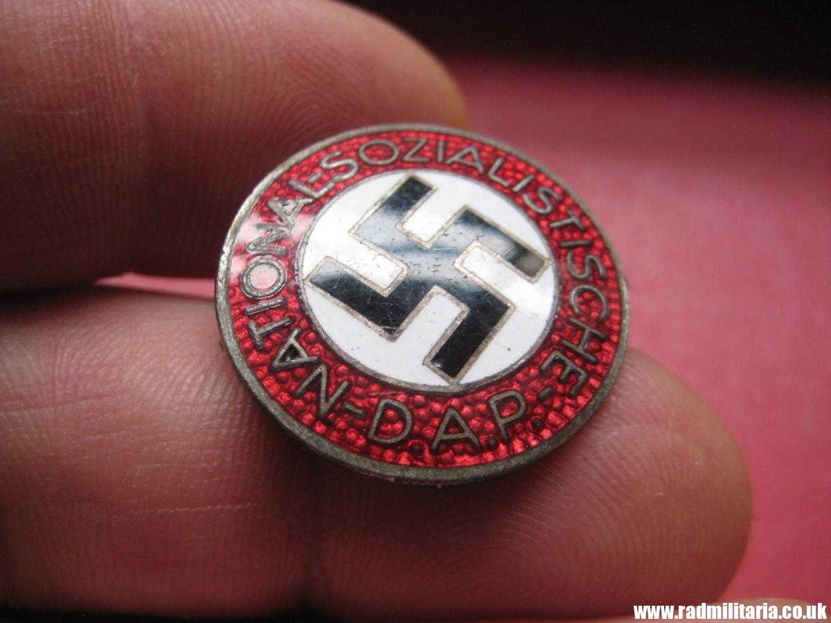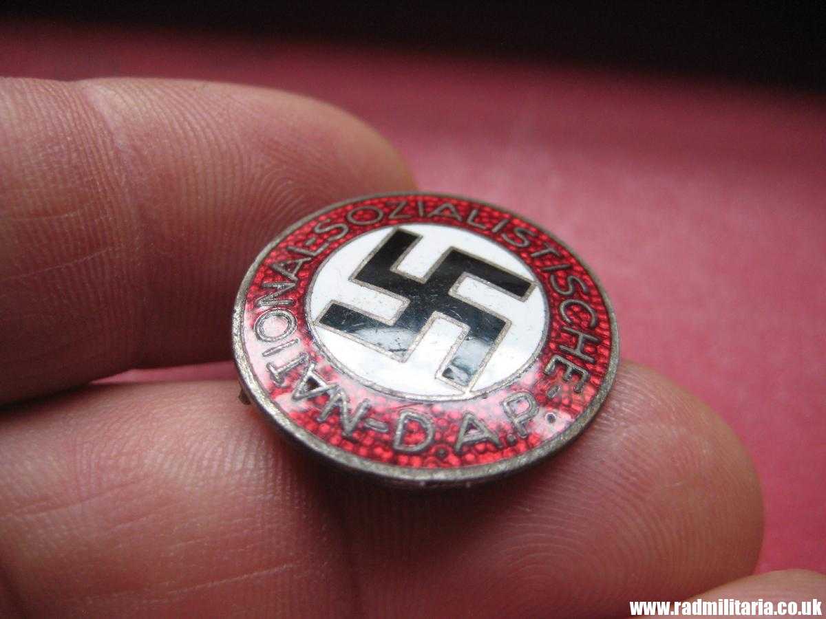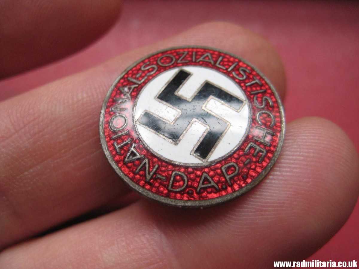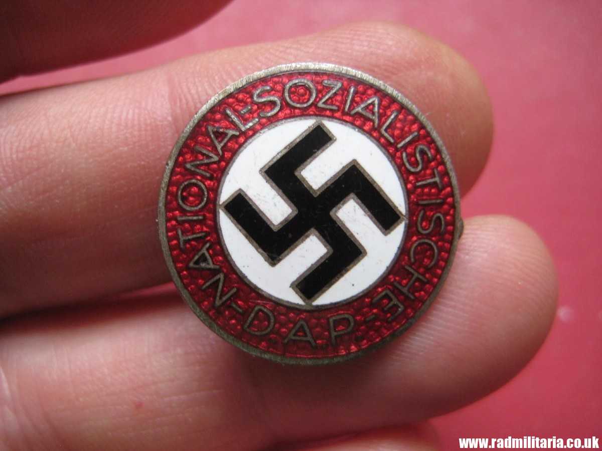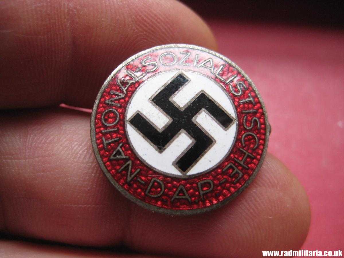 Today I am selling an original German NSDAP enamel badge. It is marked on the reverse side ‘RZM M1/128’ maker: M1/128 Eugen Schmidhaussler Pforzheim.. Good used condition with very nice good quality enamel but the pin on the reverse side is broken. The white and red enamel is NOT damaged – please look in the photos. DESCRIPTION: “NATIONALSOZIALISTISCHE D.A.P.”. There is nice enamel red, white and black on the front side of this badge. It is original NSDAP membership badge from WW2 era. The condition and all details you will find in the pictures. It is original item from WW2 era.