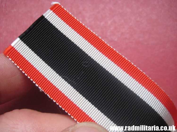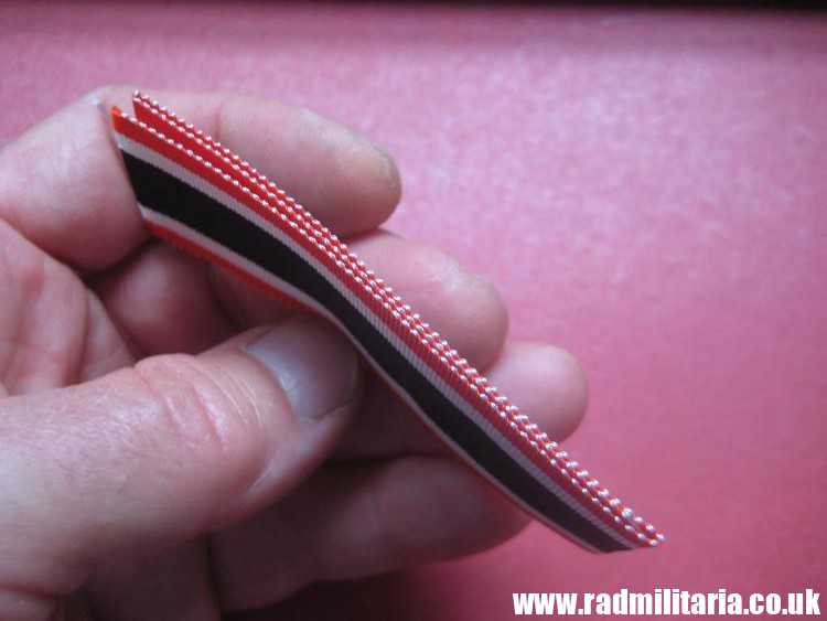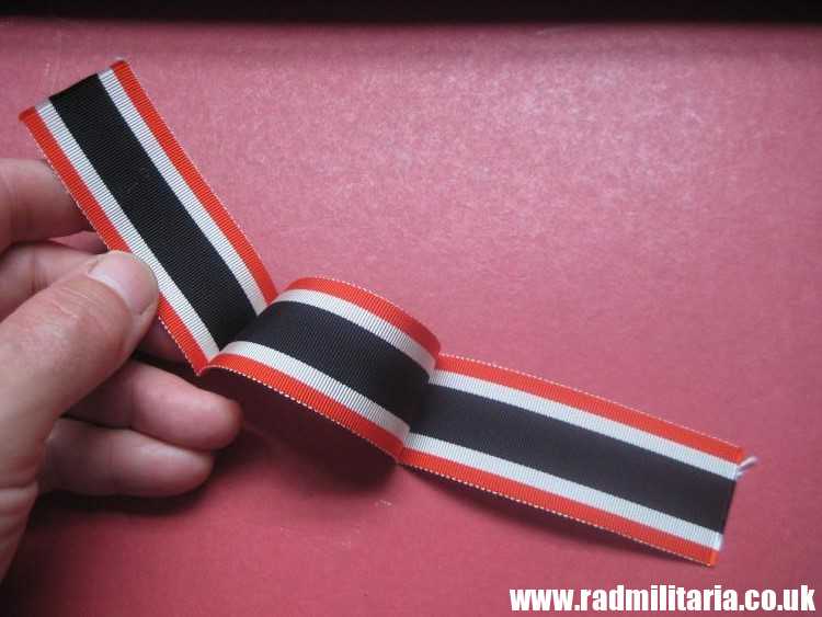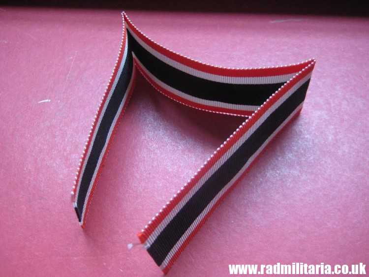 Today I am selling 100% original German RIBBON from WW2 era in good/perfect condition – never used. Total lenght: 24.5cm, width: 3.2cm. The condition and all details you will find in the pictures. It is 100% original item from WW2 in VERY GOOD condition. Original RIBBON for – KRIEGS-VERDIENSTKREUZ 2. Klasse