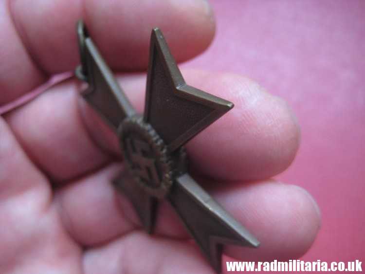 Today I am selling 100% original German KVK CROSS 2nd Class from WW2 era in very good/mint condition. It was never used. I think it is made of not magnetic metal – probably bronze. There is maker mark on the ring: “1”. No ribbon. Description: “1939”. The condition and all details you will find in the pictures. It is 100% genuine item from WW2 era in VERY GOOD / PERFECT condition.